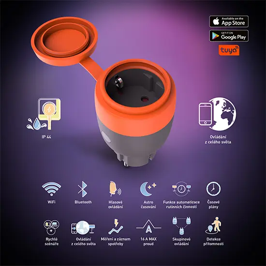 - Chytrá venkovní zásuvka s Wi-Fi připojením