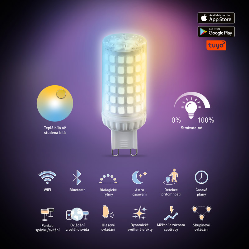 Díky aplikaci RETLUX home, dostupné pro iOS a Android, můžete snadno nastavovat časovače a integrovat žárovku s dalšími prvky chytré domácnosti. To činí Wi-Fi SMART žárovku RETLUX RSH 105 ideálním společníkem pro každodenní život.