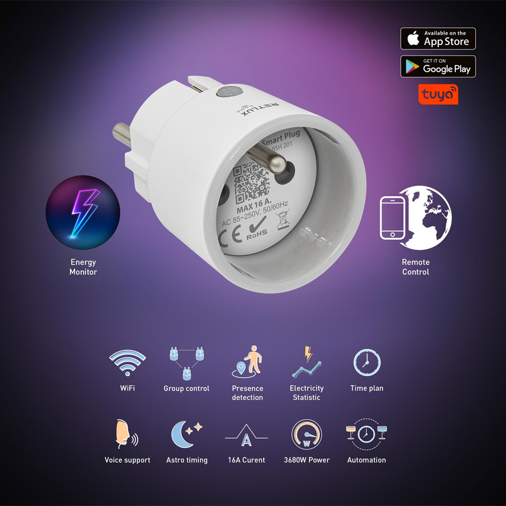 Chytrá zásuvka Retlux RSH 201 vás vtáhne do světa nejmodernějších technologií a její multifunkčnost se stane nedílnou součástí vaši chytré domácnosti. Díky kompaktním rozměrům a minimalistickému provedení se skvěle hodí do každého interiéru a zapojíte ji do těžko dostupných zásuvek.